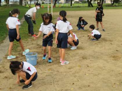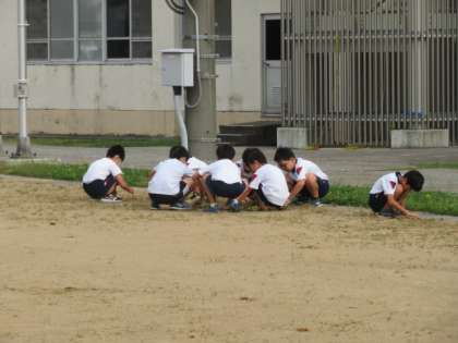 朝の草むしりボランティア隊。今日も自主的な活動が続きます。