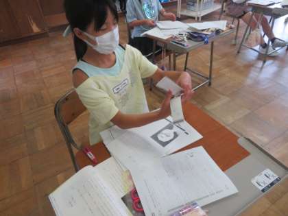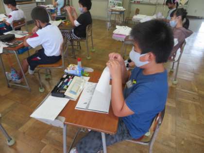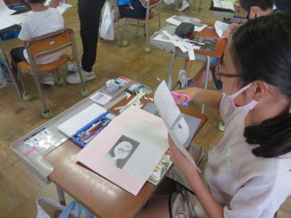学習をする物語文のワークシートを作っています。これから登場人物の場面ごとの気持ち変化を書き込んでいきます。