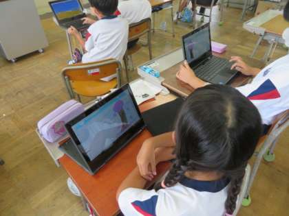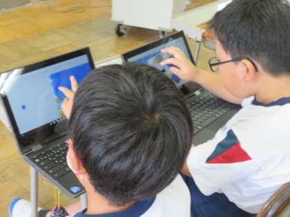 PCのパレットを使って、いろいろな色の色合いや組み合わせを考えています。