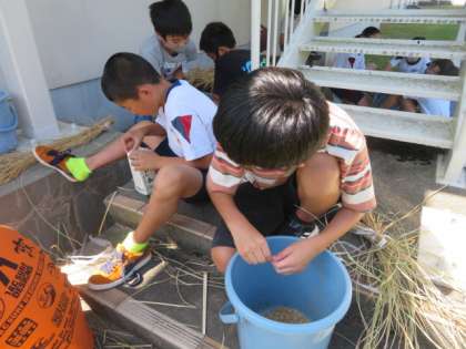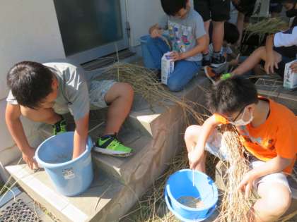 10月4日(月) 5年 総合的な学習の時間「脱穀作業1」