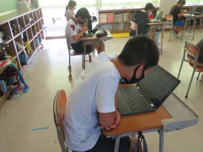 学習発表会で発表するせりふや配役が決まり、読み合わせをしています。せりふは全て自分たちで考えました。