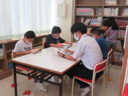 図書室で、読書タイムです。好きな本に没頭して読んでいます。
