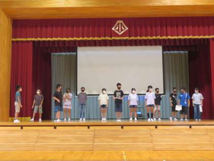 学習発表会の練習中です。歴史上の人物に出会いながら、自分たちの今を見つめていきます。どのような発表になるのか、楽しみです。