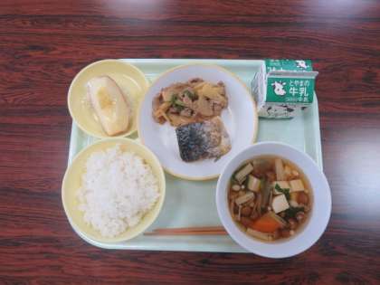 10月11日(月) 今日の給食 公開日 2021/10/11 更新日 2021/10/11 学校 行事 今日の献立は、 ご飯 きのこ汁 さばの味噌煮 マコモタケのオイスターソースいため りんご 牛乳 でした。