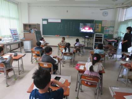 予行練習後、自分たちの発表のビデオを見ながら、早速振り返り。もっと上手くできることは何か考えています。また、他の学年の発表で素敵だと思ったことも話し合いました。