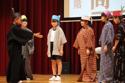 先人の知恵や考え方から自分たちの有り様を見つめ成長する子供たちの姿を、「ダンス日本一」という夢の実現に向けて練習に励んでいる自分たちの姿に重ねながら、演じました。最後のダンスには、自分たちの思いが込められています。温かい拍手、ありがとうございました。