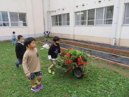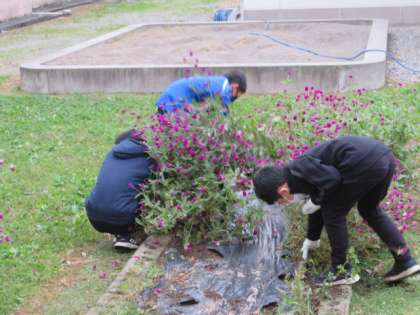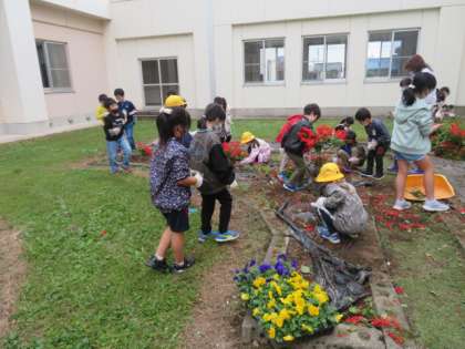 今週は、全校で花壇の秋植えの手入れを行いました。