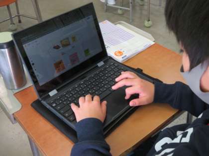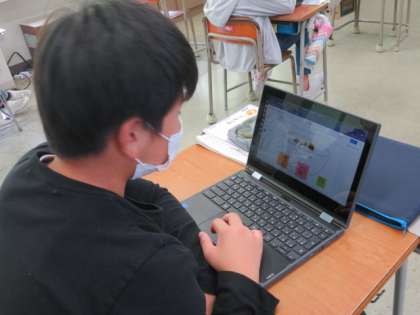家族の人に喜んでもらえるみそ汁作りの計画を立てています。PCを使いながら、入れる具や切り方などをまとめています。