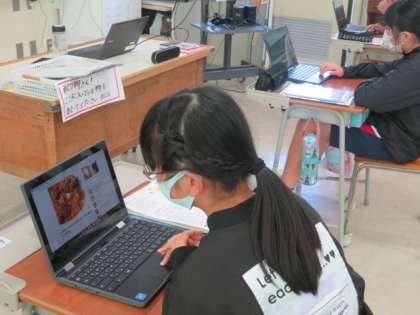 家族が喜ぶ献立つくりに向けて、卵を使った料理の種類について調べ、自分の献立に生かそうとしています。