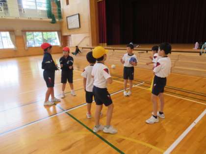 昨日、話合いの場があったドッジボール渡しの運動。チームで声をかけ合い協力し合って練習に取り組んでいました。記録も前回より伸び、友達のよいところや自分のもっと上手くな痛いことなどを再度、確認しました。