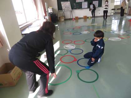 さいころ振って止まったマスのミッションをクリアしながらゴールを目指します。「べんきょうコーナー」「なかよしカード」「げんきカード」など、楽しく学習したり運動したりしながら活動することができました。