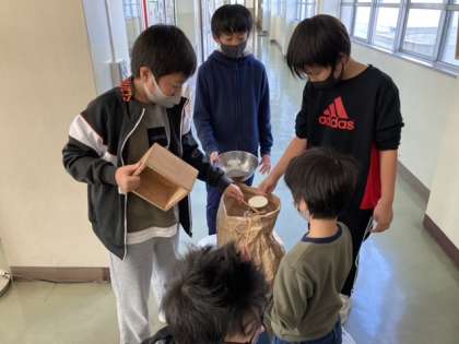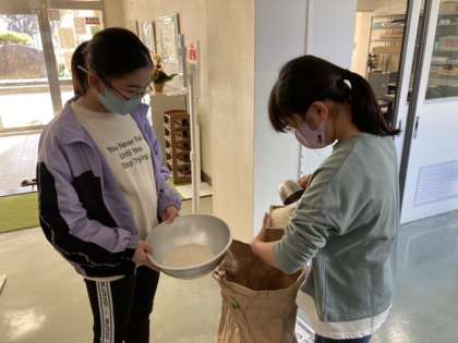 明日の餅つき大会に向け、6班に分かれて、各班餅米1升5合を研ぎました。
