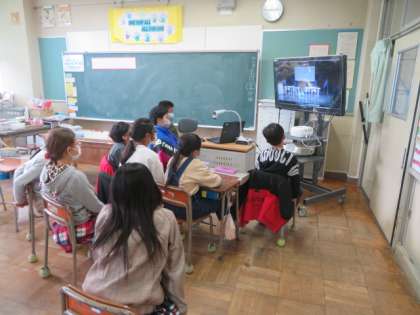 全国小・中学校リズムダンスふれあいコンクール予選を見事に勝ち上がり、決勝大会に出場する4年生。過去の決勝大会のダンスの様子を視聴して、自分たちの動きに生かそうとしています。