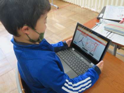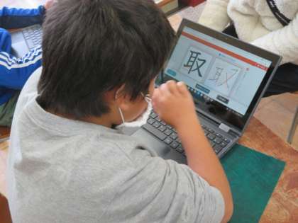 デジタルドリルソフトの体験版サイトを利用して漢字練習をしたり、学校での様子を日記に書き表したりしています。