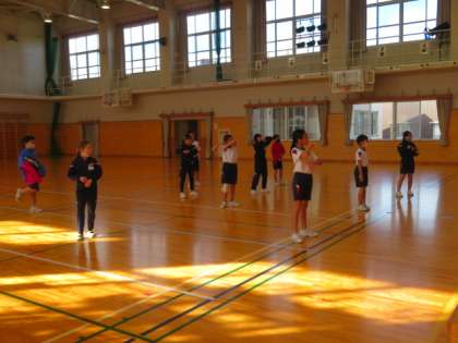 共にダンス全国大会決勝に進んだ4・6年生が、同じ時間同じ場所で練習を行いました。お互いの練習も気になりますが、それぞれ新しい踊りの確認に余念がありません。