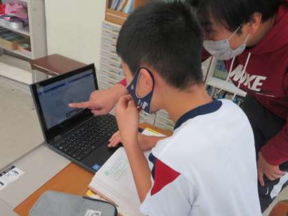 クラウド教材の体験版を行っています。自分で復習したい勉強を選んで取り組んでいます。