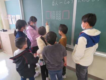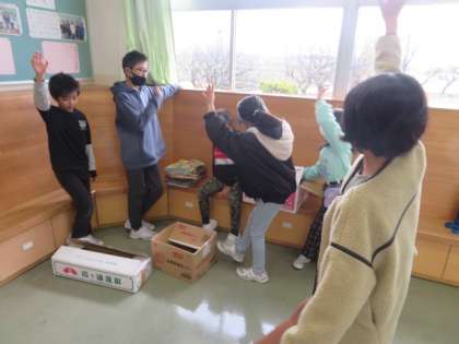 昼休みには、なかよし班ごとに分かれ、6年生が中心となって考えたゲームで遊びました。