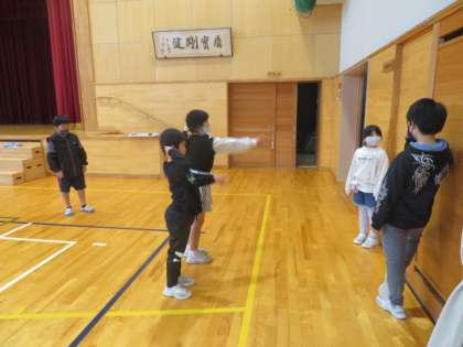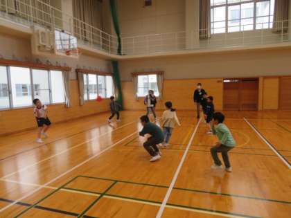 体育館では、ドッジボールやケイドロ、だるまさんがころんだなどで、楽しく遊びました。班のみんなと、よりなかよくなりました。