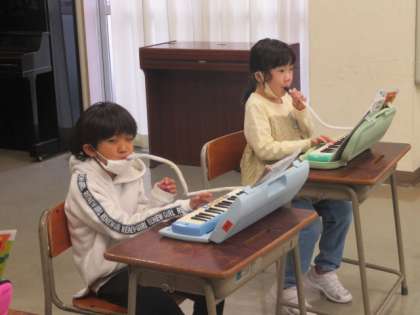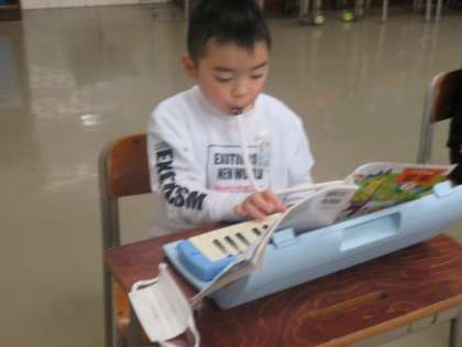 「山のポルカ」を鍵盤ハーモニカで演奏しました。心地よい音が響いていました。