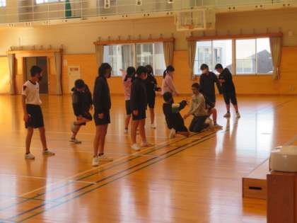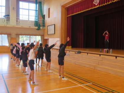 全校大会の資料となる全員のポーズ写真を撮影しています。