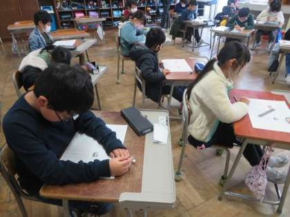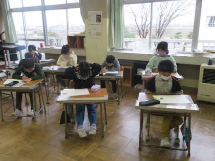 2学期の学習のたしかめをしています。最後まで諦めずに集中して解いています。