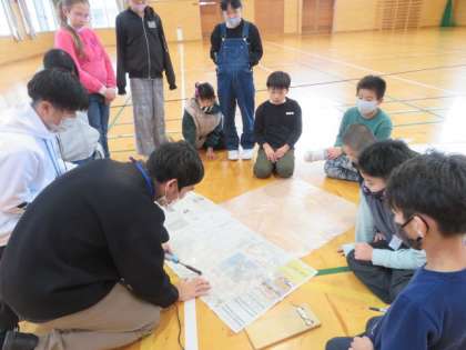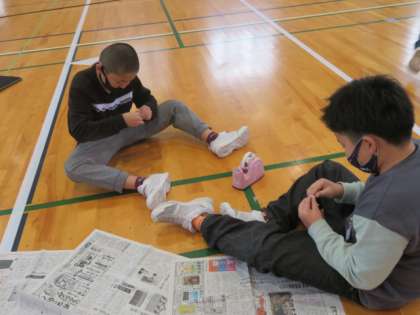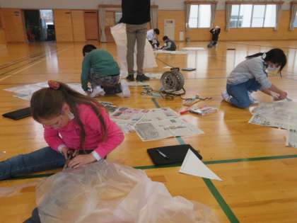 あたためられた空気が上に行く性質を利用して、気球をつくり、あたたかい空気を袋に溜める上に行くのか実験しました。