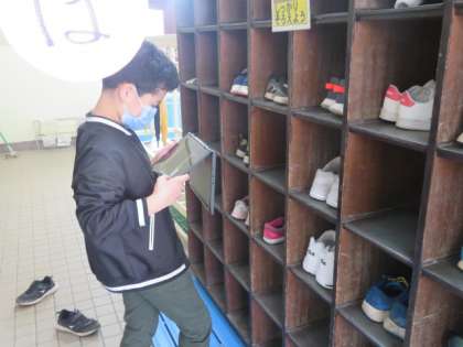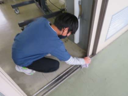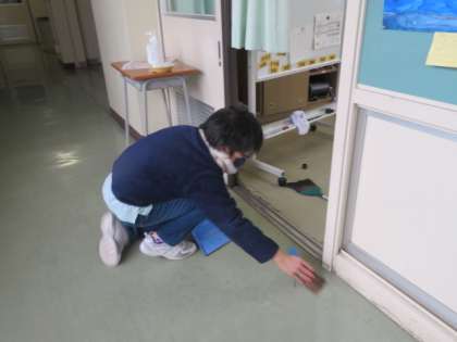 校舎内で汚れのひどい所の写真を撮り、きれいに掃除した後の写真と見比べて、掃除の仕方を見直しました。