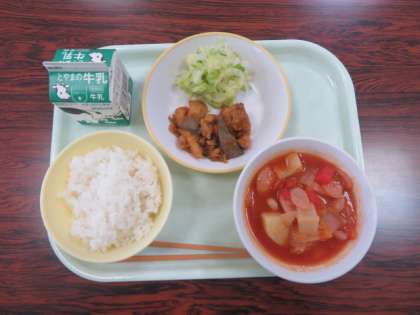 12月20日(月) 今日の給食 公開日 2021/12/20 更新日 2021/12/20 学校 行事 今日の献立は、 ご飯 冬野菜のミネストローネ 鶏肉とレバーのねぎソース ゆでキャベツ 牛乳 でした。
