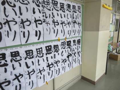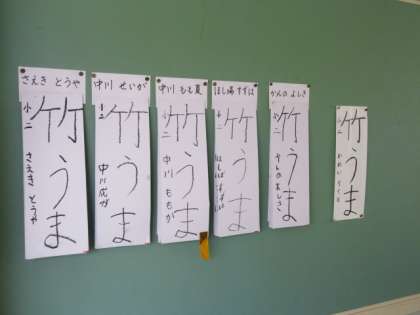 書き初め大会では、冬休みの練習の成果を発揮し、以前に比べ字形が整いのびのびとした作品が増えました。
