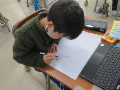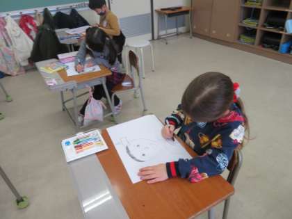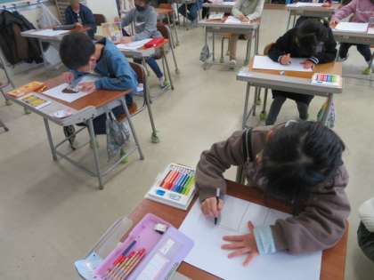 1月13日(木) 1年 図画工作科「かぞくの人の絵を描こう」