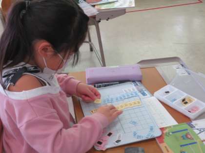 1000より大きな数の仕組みをカードを使って考えています。買い物するときにも役立ちそうです。
