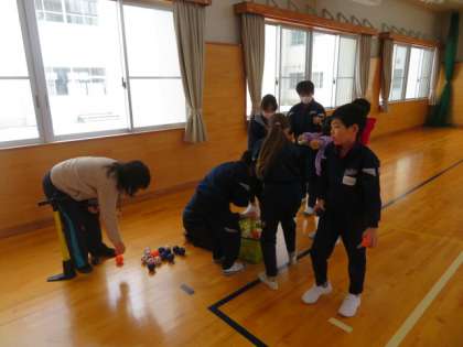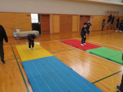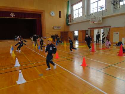 なかよし班を前後半2つに分け、密を避けるために時間差を設けて取り組んでいます。少し寒さの残る体育館でしたが、子供たちの熱気も伝わってきました。