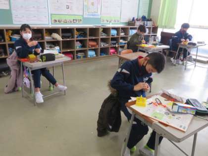 これらの学習の準備として、コイルや方位磁針、実験装置などを組み立てています。