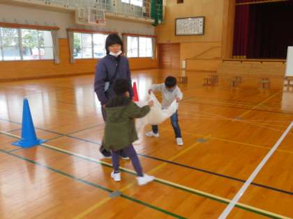 1月24日に予定している「入学児童体験入学の準備のため、動きや役割を確認しています。1年生がお兄さんやお姉さんとしてお手本を示すことができるか、注目です。