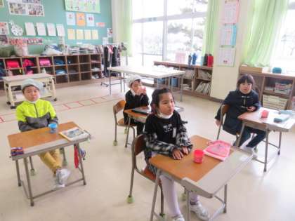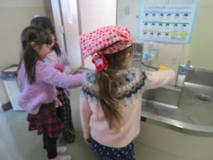週1回のフッ化物洗口。少し苦い味ですが、虫歯予防のため全校で取り組んでいます。1年生も慣れてきました。