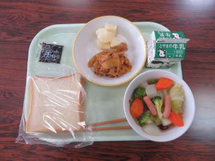 今日の献立は、ハリー・ポッターシリーズ。 食パン 牛乳 ポークチョップ ゆでポテト