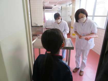 調理員さんの感謝のメッセージは、3年生。代表の人が発表後、調理員さんに手紙を渡しました。
