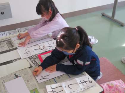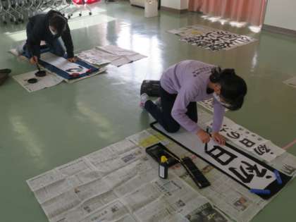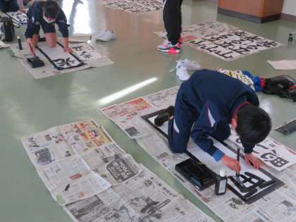 学校で行う最後の書き初め練習です。落ち着いて集中して取り組んでいます。清書したものから一枚選んで、県の書き初め大会へ出品します。皆さん、とても上達しました。結果が楽しみです。