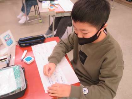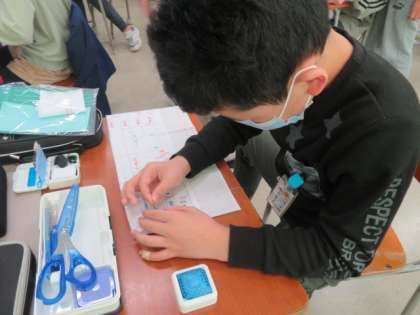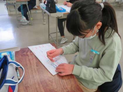 玉結びと玉留めに挑戦しています。何度も繰り返し練習していきます。