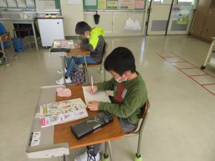 友達からもらったメッセージカードを読んで、感想を書いています。