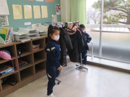 「1mって、どのくらいの長さなのだろうか」自分の体の一部を頼りに、教室にある「1m」を見付けていました。