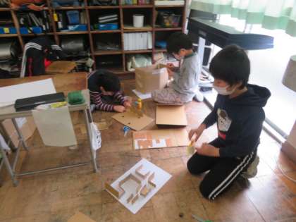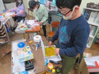 磁石の引き合ったり反発し合ったりする性質を利用した作品を考え作っています。子供たちのアイディアと意欲は、どんどん膨らんでいきました。