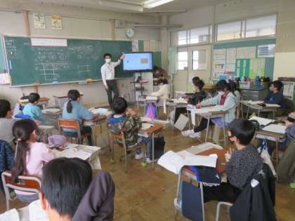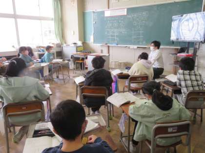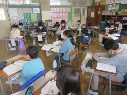 「もとにしている数は何だろう」「□を使うと簡単だ」文章題の意味を考え、関係を図で表しながら立式していました。集中して学習に取り組んでいます。