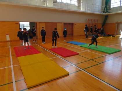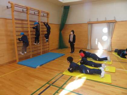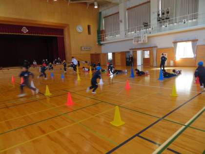 なかよし班ごと前半後半に分かれて、体力作りを行いました。