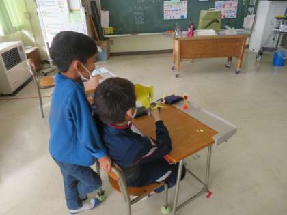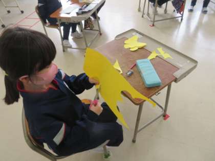 卒業をお祝いする飾りを心を込めて丁寧に作っています。