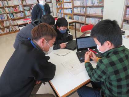自然災害が及ぼす影響について、資料で調べながらまとめています。