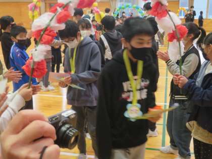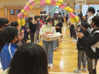 最後には、教職員も皆さんからの歌のプレゼント。6年生への感謝の気持ちがいっぱいつまった集会でした。
