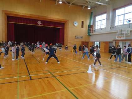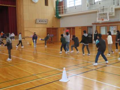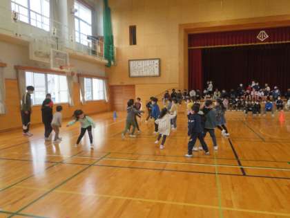 6年生が企画した、学年別ふれあいドッジボールを行いました。低・中にはハンディを付け、5年生とはハンディなしで対戦しました。