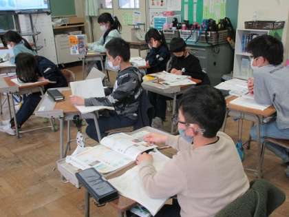 教科書の資料から読み取ることのできる市の移り変わりを、今日の創校記念集会での時代背景と関連付けながら考えていました。