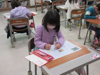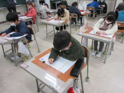 テスト中です。問題をしっかり読んで答えています。